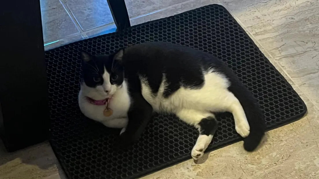"Wow, this mat works wonders! My cat used to track litter everywhere, but now it's all contained on this mat. So easy to clean too, just shake out the litter and done! I love that it's safe for my furry buddy and the earth. Totally worth it!"
