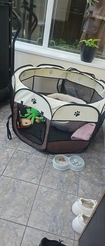 Enjoy spacious and secure comfort with the Portable Pet Play Pen